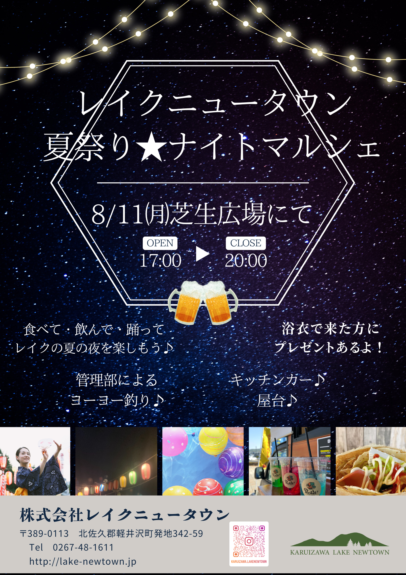 レイクニュータウン夏祭り・ナイトマルシェ8/11開催します★芝生広場17時ー20時