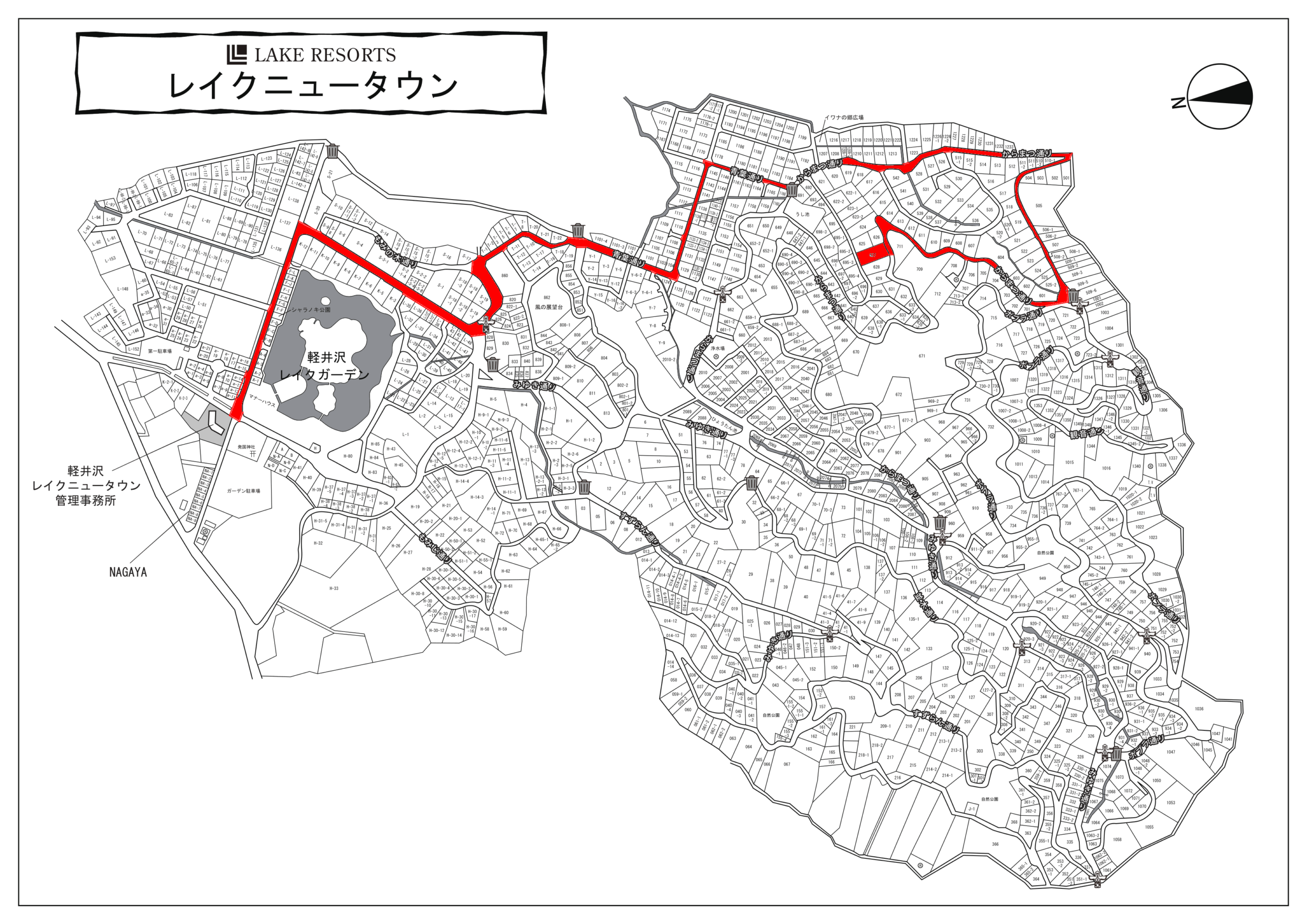 | 交通 | 北陸新幹線「軽井沢」駅⇒レイクニュータウン管理事務所 入り口まで約6.1Km(車で約10分) |