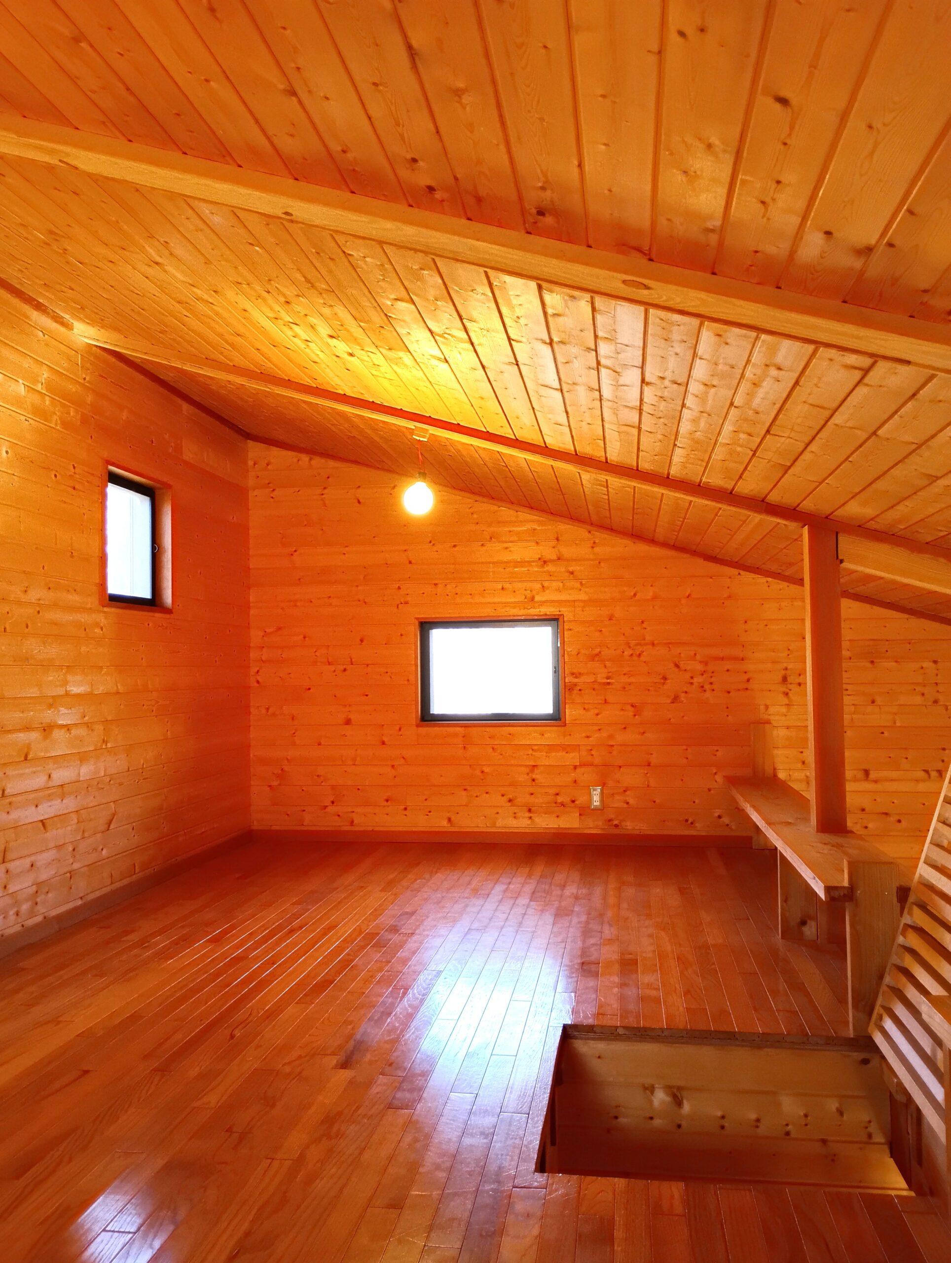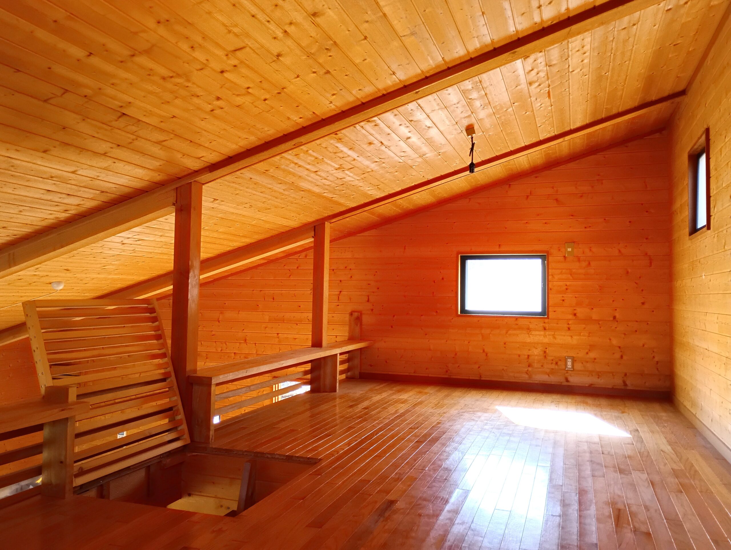 梯子階段から上る2階は屋根裏部屋を思わせる趣向スペース!!